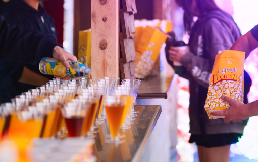 Our kiosk serves popcorn and nachos, recharge and keep you refreshed all night.